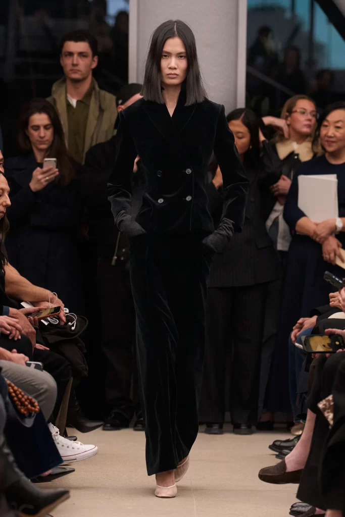 A black velvet tailored suit adds depth and richness, where sharp tailoring meets a soft, light-absorbing texture