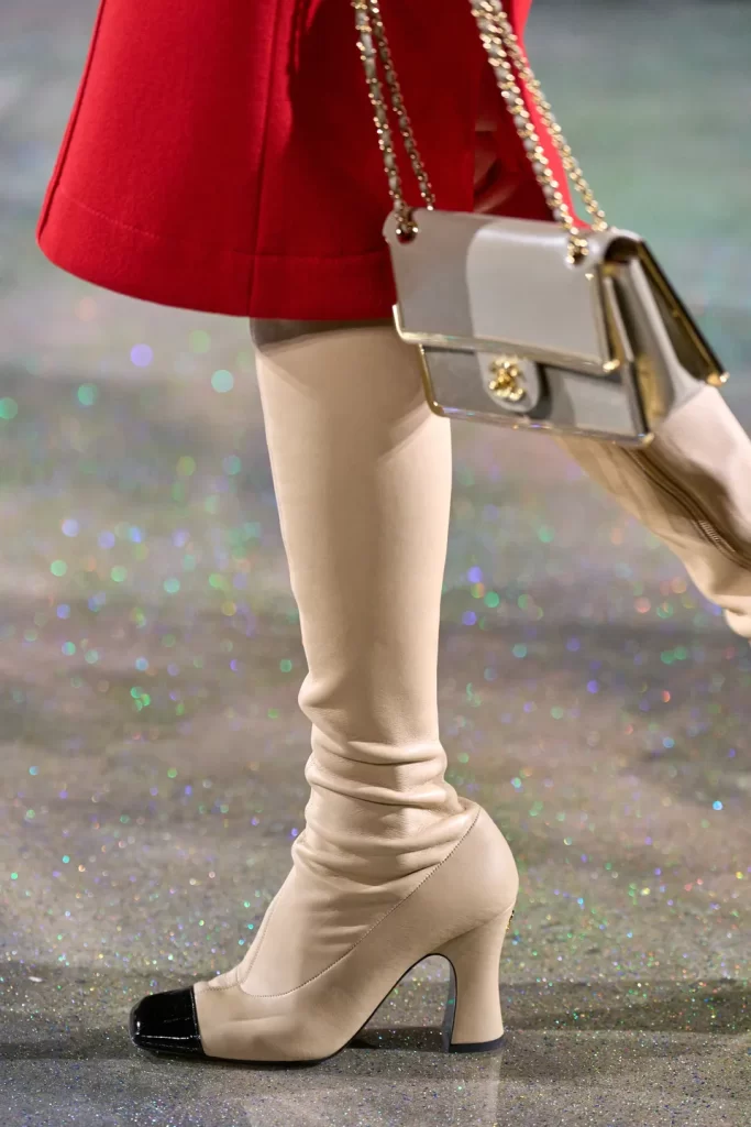 A modern extension of Chanel’s signature footwear, where the classic cap-toe is elevated into a sleek, over-the-knee silhouette
