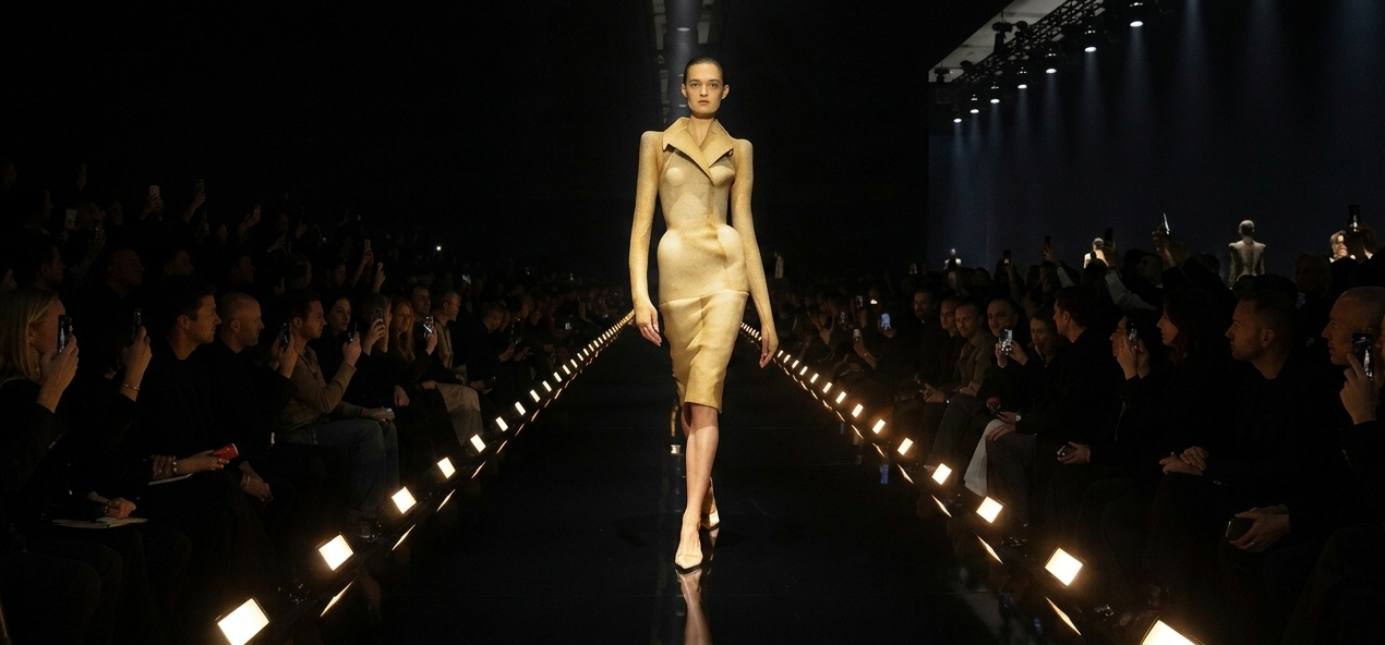 Under the creative direction of Daniel Roseberry, Schiaparelli’s Fall/Winter 2026 collection reaffirmed the house’s surrealist identity through sculptural silhouettes, gilded details, and couture craftsmanship. Presented during Paris Fashion Week, the collection explored the tension between fantasy and discipline, where theatrical symbolism met meticulous tailoring.