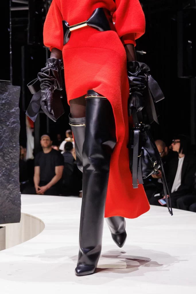Givenchy Fall/Winter 2026, under the direction of Sarah Burton, marks a significant new chapter for the house, where precision tailoring and refined sensuality are reexamined through a contemporary lens. The collection balances sharp, elongated silhouettes with moments of fluidity and delicate ornamentation, creating a dialogue between strength and softness. A restrained palette of deep blacks, layered greys, and selective bursts of color underscores the house’s modern evolution, while subtle textural contrasts introduce depth and quiet complexity. Burton’s vision feels both respectful of the house’s heritage and confidently forward-looking, establishing a renewed sense of purpose for Givenchy.