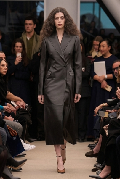 Refined structure continues through a sharply tailored silhouette, where clean lines and precise construction emphasize the house’s commitment to modern, architectural dressing.